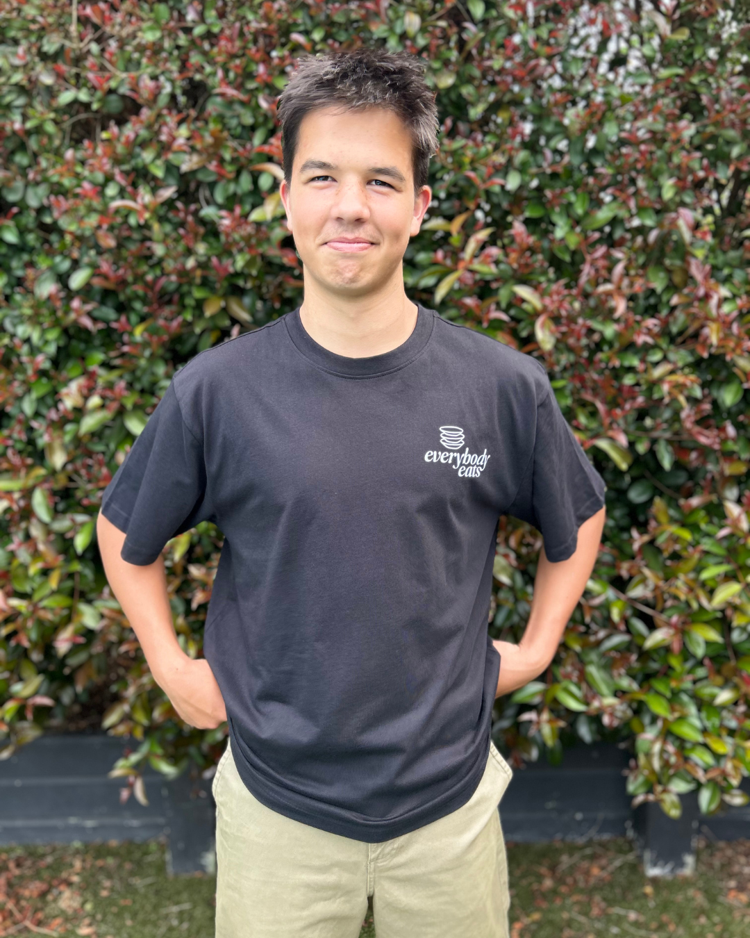 Meet the Everybody Eats Short Sleeve Tee — a versatile unisex favourite with a modern silhouette and a slightly longer fit for easy, everyday wear. A black tee with Everybody Eats branding has been a core piece of our 'uniform' since the early days worn by volunteers in our kitchens and dining rooms. When you wear it, you’re not just choosing a great T-shirt — you’re supporting our mission and carrying our kaupapa with you.